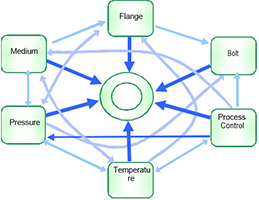 The suitability of a gasket material for an application is dependent upon a multiplicity of factors as shown in the above digram. Max. temperature and pressure values can not define the suitability for application. It is always advisable to consider these factors when selecting a material for a given application.